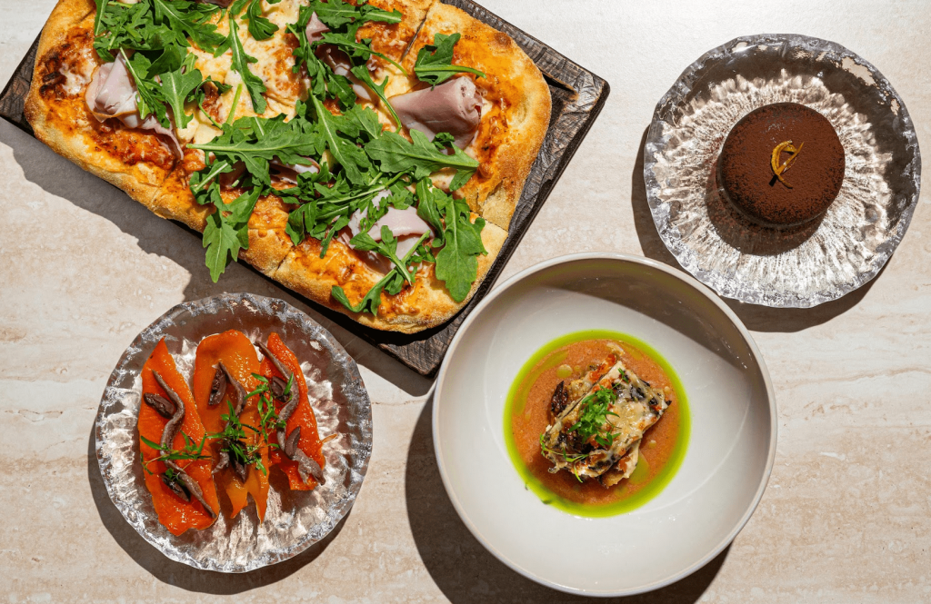 Сет ведет от легкого старта с печеным перцем, анчоусами и оливками к запеченному Пармиджано с баклажанами и томатами, далее — римская пицца с тамбовским окороком, завершаем моти тирамису. Специалитет сета — пицца, ради которой стоит пройти весь гастрономический маршрут.
