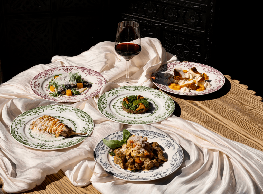 Идея сета – максимально использовать местные и сезонные продукты. Сладкую тыкву и местный виноград мы сочетаем с итальянской горгонзолой в салате. В тартаре используем местную говядину, выращенную на полях Кубани. Как горячую закуску мы подаем баклажан с соусом из кубанских томатов. Основное блюдо – рагу из адыгейского барашка с пастой и копчёным адыгейским сыром. Завершает наш сет чизкейк из сыра, сделанного в станице Ленинградской Краснодарского края.
