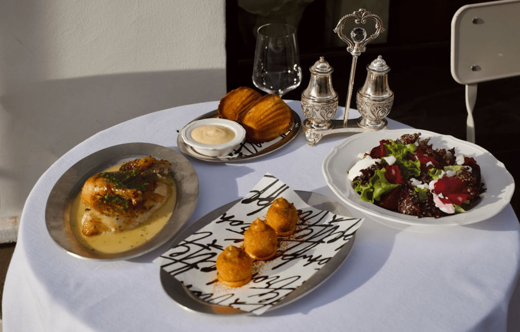 Мы сделали сет легким и гармоничным, чтобы показать гостям стиль Bistro Trompette. В него вошли наши топовые позиции, которые уже успели полюбиться гостям, хотя ресторан открылся совсем недавно. Начинаем с хрустящих куриных крокетов, подаем освежающую свеклу с козьим сыром и микс-салатом, продолжаем курицей на вертеле. Завершаем сет нежными мадленами.